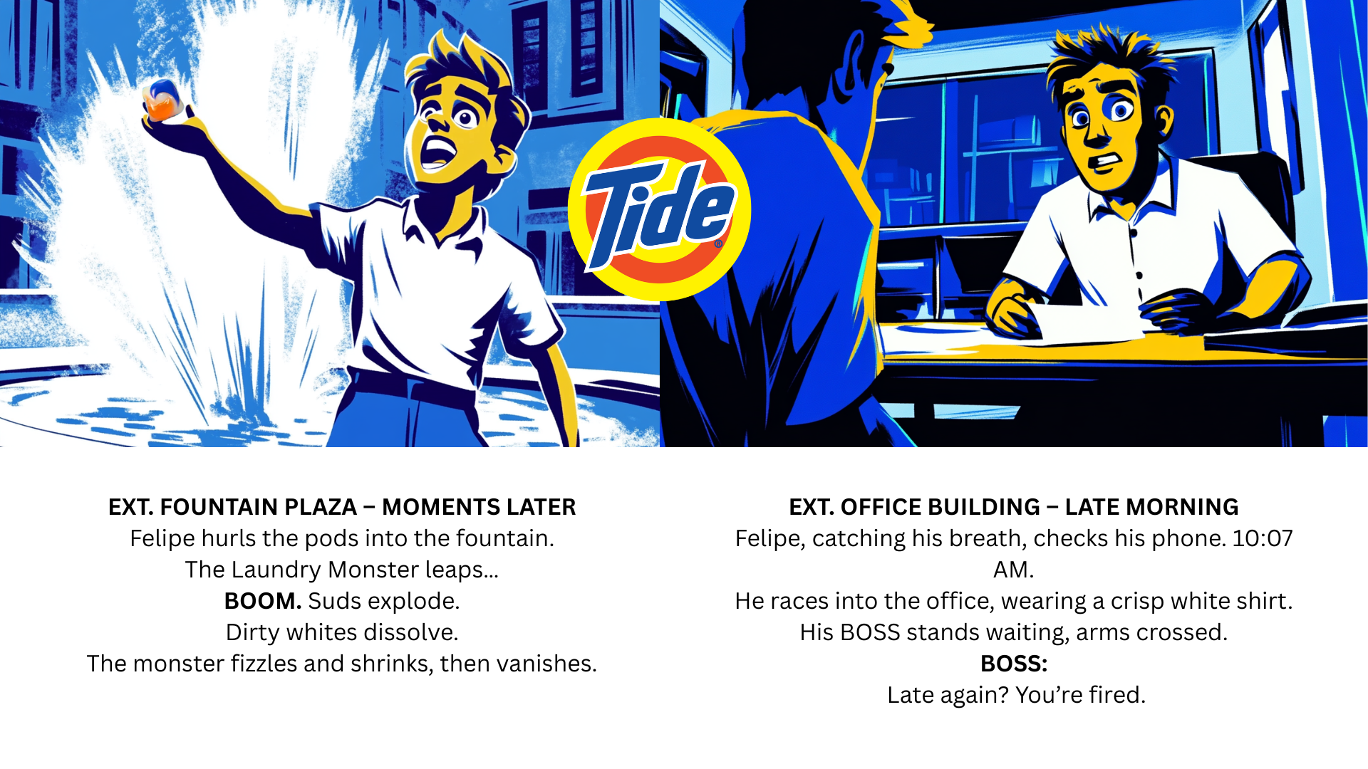 In Short & Sweet class, we wrote a TV spot inspired by classic story archetypes and chose Kafka as our reference. Created during our third quarter, this campaign earned our team the Top Dog Award at Miami Ad School.